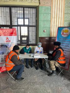 Түркістан қаласы Темір жол вокзалында қала тұрғындары мен қонақтарыға және мекеме қызметкерлеріне арналған шара өткізілді. Облыстық АИТВ инфекциясының алдын алу орталығының мамандары ұйымдастырған бұл шара 1-желтоқсан Дүниежүзілік ЖИТС ке қарсы күрес күніне арналды.