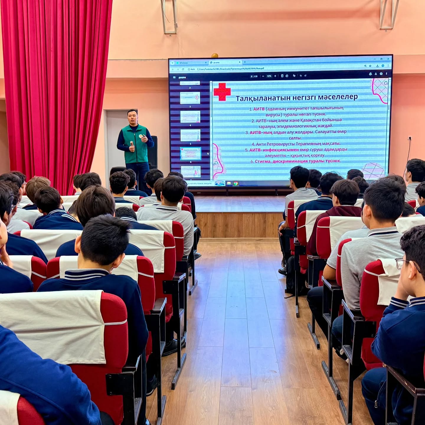 Түркістан қаласында орналасқан “Білім инновация” лицейінде семинар жұмыстары жүргізілді. Іс шараның мақсаты — оқушыларға АИТВ инфекциясы туралы шынайы ақпарат бере отырып, оларды қауіпсіз мінез- құлық дағдысына үйрету және АИТВ- инфекцисымен өмір сүруші адамның құқықтарына құрмет көрсетуге тәрбиелеу.